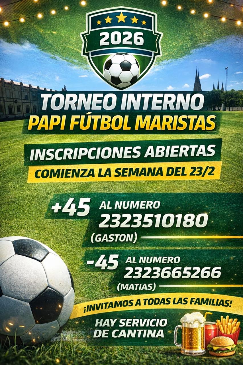 Ya están abiertas las inscripciones para una nueva edición del Torneo Interno de Papi Fútbol Maristas, un espacio pensado para compartir deporte, encuentro y comunidad entre las familias.